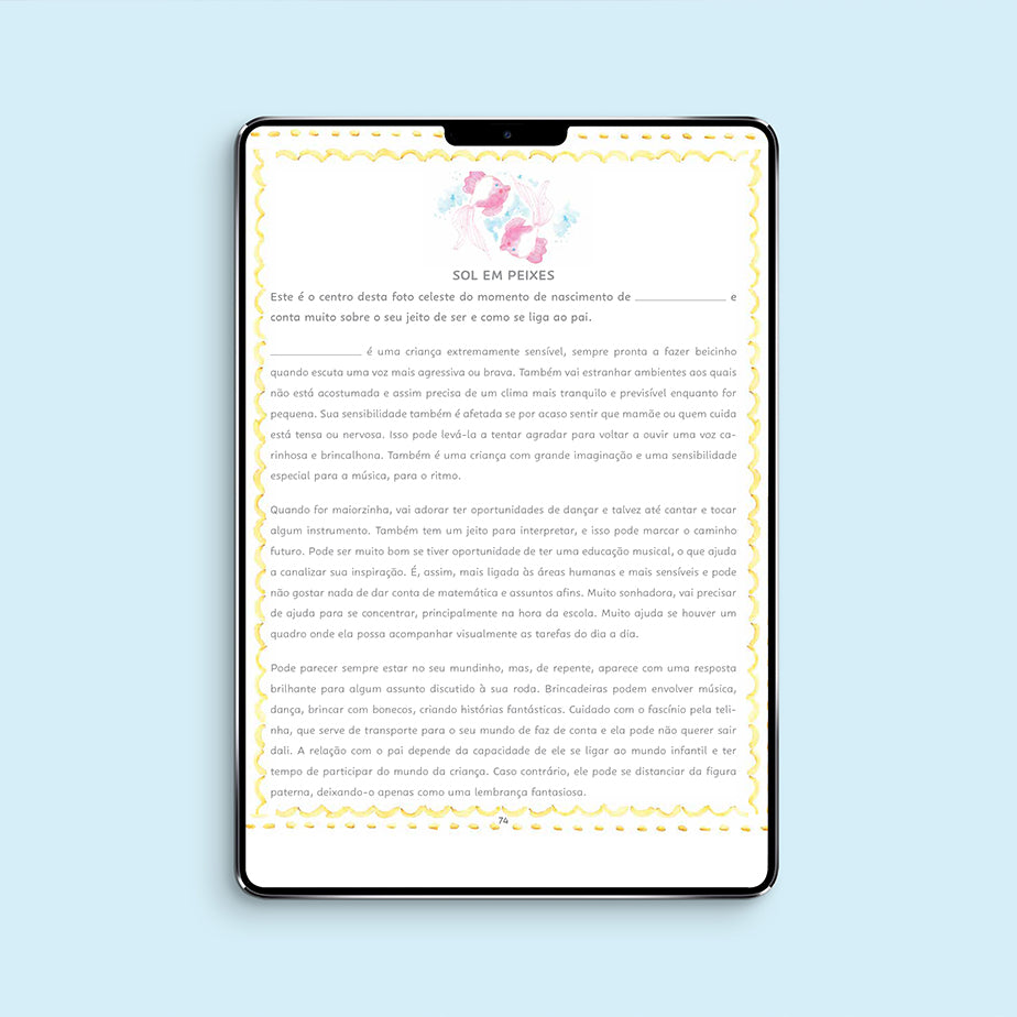 No momento do nosso nascimento, a disposição do Sol, da Lua e dos astros em diferentes signos do zodíaco carrega diversos significados para a nossa jornada na vida. Entender esses aspectos é uma forma de oferecer orientação aos nossos filhos, afilhados, netos e sobrinhos, ajudando-os a iniciar sua trajetória com mais clareza e sabedoria.